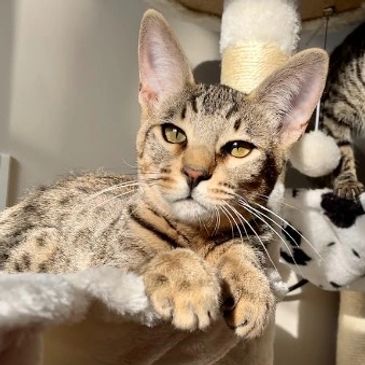 Alaska est une F4 silver plus pâle que Mila. Ses spots sont magnifiques ! C'est notre plus douce et chaleureuse de la famille. Elle aura sa première portée à la fin de 2022.